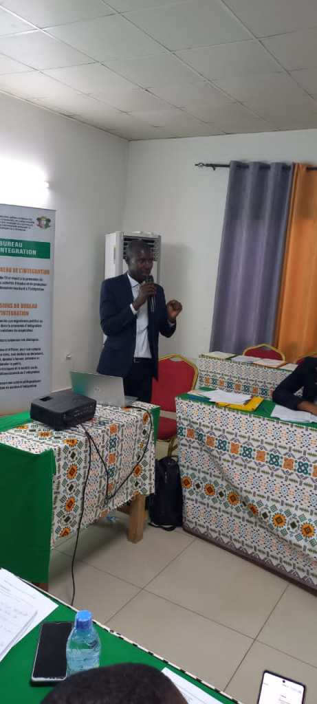 » Je voudrais à l’entame de mes propos, au nom de leurs Excellences, les Ministres des affaires étrangères et du Ministre délégué chargé de l’Intégration Africaine et des Ivoiriens de l’Extérieur, réitérer mes remerciements à Madame Mariatou KONE, Ministre de l’Education Nationale et de l’Alphabétisation pour la parfaite collaboration entre nos ministères respectifs sur le projet de « création des clubs de l’intégration africaine dans les établissements scolaires » de Côte d’Ivoire.En leur nom, je voudrais dire un grand merci au Directeur de la Vie Scolaire, M. GBOKO Adjoumani pour l’excellence du partenariat entre nos deux directions.Mesdames et Messieurs, chers points focaux, désignés pour accompagner le BIPIA dans l’accomplissement de ce projet noble, recevez mes chaleureuses salutations. Merci pour votre disponibilité et votre engagement à la cause des clubs de l’intégration Africaine » a déclaré d’emblée le Directeur du BIPIA Monsieur Moussa Mama.